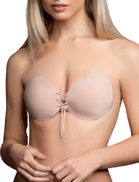 Förvandla din silhuett med Bye Bra Rund Spets. Denna adhesiv bh ger justerbart stöd och en naturlig lyft, för klänningar utan axelremmar.