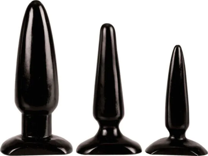 Inled din analutforskning med CALEXOTICS Analpluggsset. Med tre pluggar i olika storlekar är detta set designat för bekväm och gradvis utforskning.