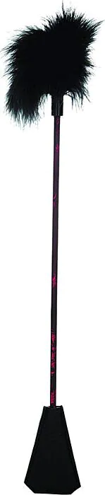 Med Scandal Fjäderpisk får du en kombination av mjuka fjädrar och en fast pisk som erbjuder en varierad stimulering. Tillverkad i hållbar polyester, låter denna mångsidiga leksak dig välja mellan förtrollande mjuka smekningar och tillfredsställande klapprande, beroende på humör.