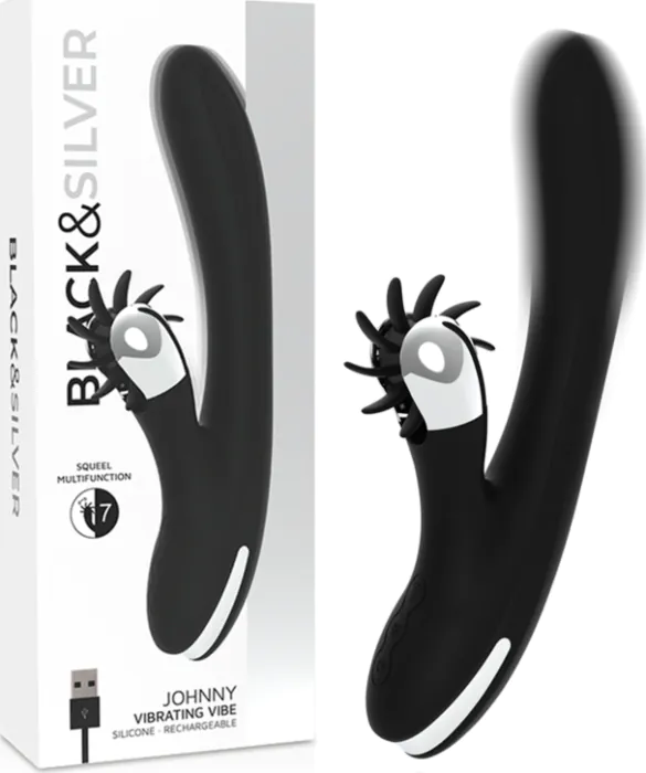 Letar du efter en handhållen vibrator som fokuserar kraften där det räknas? Bunny Johnny ger en koncentrerad stimulans precis där du vill ha den. Den kombinerar en kraftfull spetsmonterad motor med BLACK&SILVER:s Squeel-multifunktionssystem för att ge dig precisa känslor vid klitoris eller en fokuserad kontakt inuti. Utsidan är av supermjukt silikon och hypoallergeniskt ABS, vilket gör att den känns mjuk mot huden.