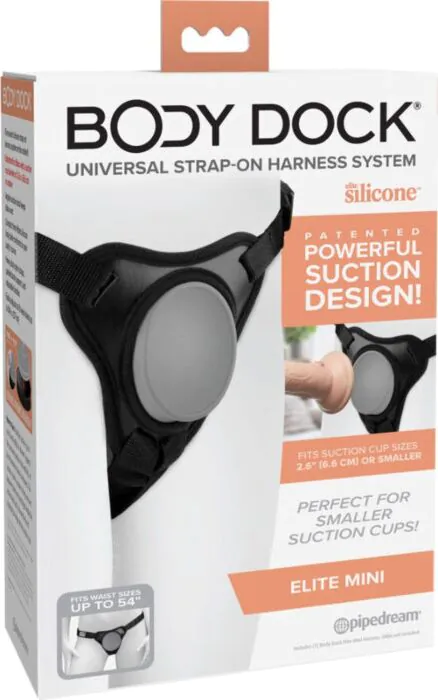 Upplev en ny nivå av strap-on lek med Body Dock Elite Mini Sele. Designad för mindre sugkoppar, ger den en sömlös och justerbar passform.