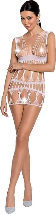 Med bodystocking Passion Woman BS089 kommer du att känna dig oförskämt attraktiv, tack vare den fängslande nätdesignen med sexiga spets- och transparenta detaljer. Tillverkad av en komfortabel elastisk blandning av 80% polyamid och 20% elastan, anpassar den sig vackert efter din kropp.