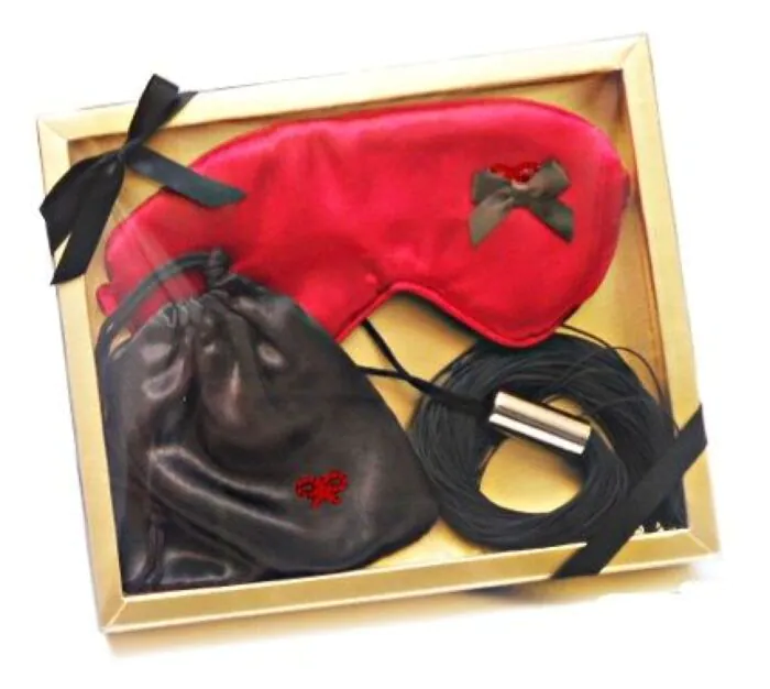 | Ingår | Satinmask, satinväska, dominatrix-piska |