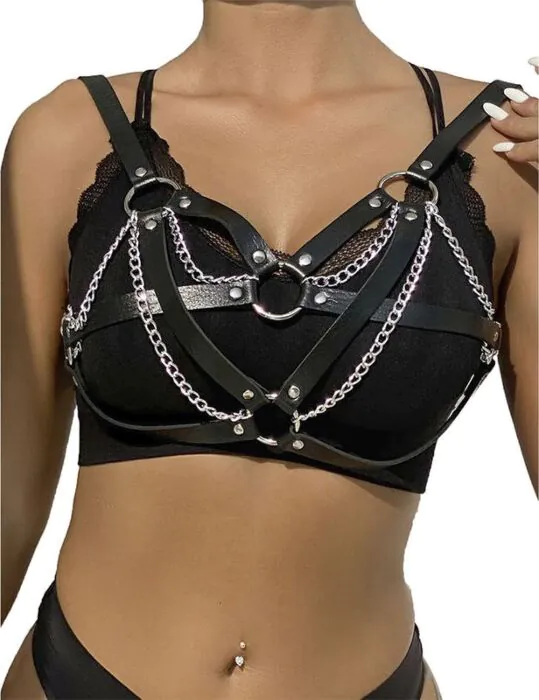 Detta bälte sitter bekvämt och framhäver kroppens konturer, samtidigt som det ger en djärv statement till din outfit. Det är ett mångsidigt tillbehör som kan bäras över kläder eller direkt på huden för maximum visuell effekt. Kombinera det med din favoritlinne för en enhetlig look.