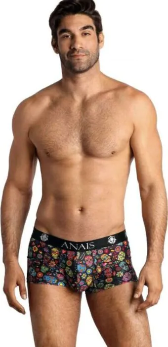 Boxershortsen ANAIS MEN MEXICO förenar komfort och stil, tillverkade av högkvalitativ modal för en mjuk känsla mot huden. Det uppseendeväckande mönstret med små blommor och dödskallar ger en kaxig touch, medan det sportiga snittet och de längre benen säkerställer en smickrande passform för olika kroppstyper.