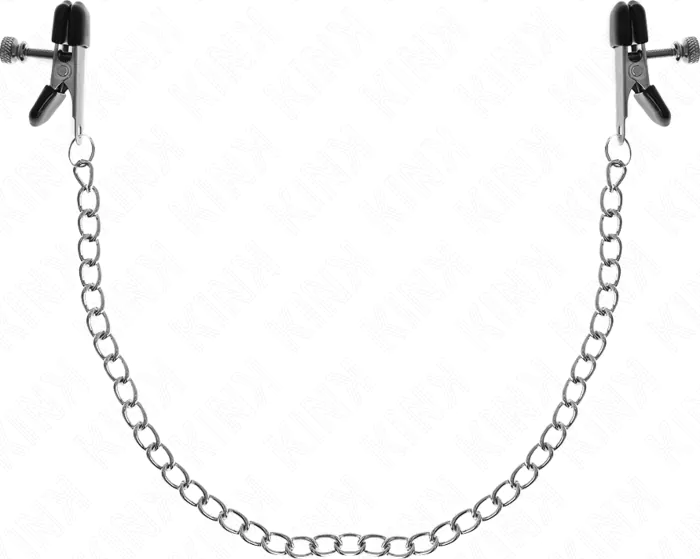 Förbättra din BDSM-upplevelse med KINKs eleganta brostvarta klämmor. Den 34 cm långa silverkedjan lägger till en visuell dimension, för att utforska stimulans och kontroll.