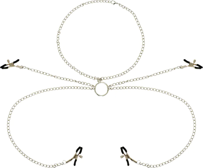Metalldelar som förstärker känslan ger ett spännande tryck, och kedjorna skapar en distinkt bondageupplevelse. Tillverkade av nickelfritt material, är dessa klamrar lätta att rengöra och underhålla, vilket säkerställer både säkerhet och användarvänlighet.