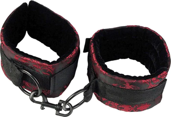 Dessa Scandal-handbojor från CalExotics har mjukt foder och ett fast grepp som kombinerar komfort med stil. för par och nybörjare som söker elegant och bekväm avhållsamhet för lätt bondage och rollspel.