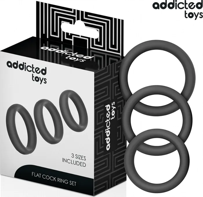 Enhance your performance and pleasure with the Addicted Toys flat silicone cock rings. Designed for comfort and effectiveness, this set offers three sizes for a personalised fit.