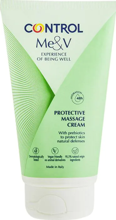 Skydda och återfukta dina intima områden med Control Me&V Massagekräm. Berikad med prebiotika och söt mandelolja för en mjuk, fuktad upplevelse i upp till 48 timmar.