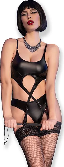 Justerbara strumpeband gör att du kan anpassa passformen efter din kropp. Ta på dig den öppna trosan och njut av de medföljande strumporna för en komplett look. Använd gärna ett vattenbaserat glidmedel för extra komfort.