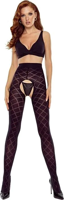 Crotchless Strumpor Passion TIOPEN 025 med Diamantmönster