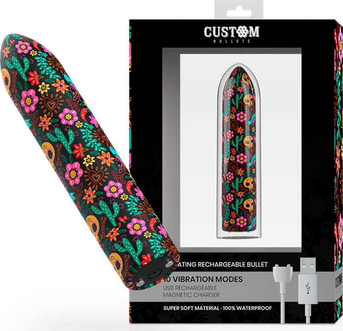 Upplev intens njutning med Custom Bullets Uppladdningsbar Skalle. Med 10 vibrationslägen är denna kompakta vibrator för diskret njutning var du än går.