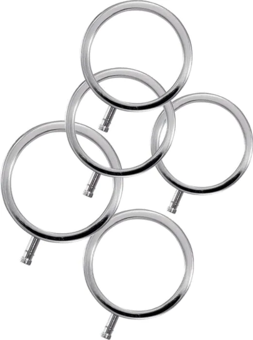 Detta fempack erbjuder ett brett storleksutbud som kan vara svårt att hitta i enskilda ringer. Den solida aluminiumkonstruktionen ger pålitlig kontakt, men kom ihåg att en kompatibel stimulator och grundläggande kännedom om E-stim säkerhet behövs.