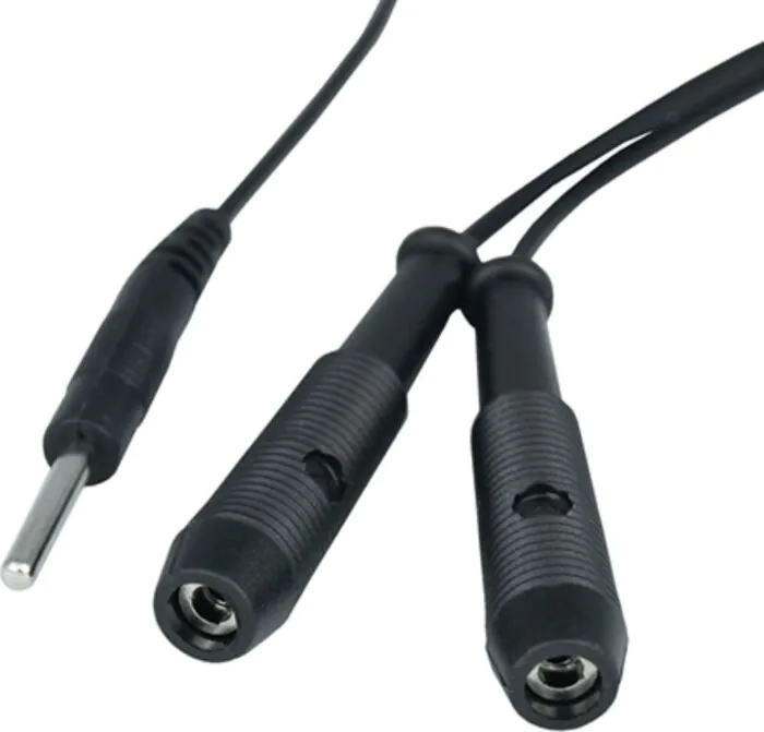 Anslut kabeln till din ElectraStim dubbelkanalsstimulator och dina valda tillbehör. Denna kabel är kompatibel med alla ElectraStim-stimulatorer och möjliggör olika kombinationer. För ökad njutning, överväg att använda med ett lämpligt glidmedel för ökad komfort.