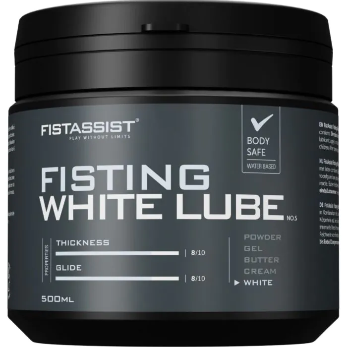 Detta är ett 500 ml vattenbaserat, ultra-tjockt vitt glidmedel från COBECO FIST ASSIST, designat för visuell och intensiv lek. Det fäster vid huden och ger en långvarig glidning som är skonsam mot känslig hud.