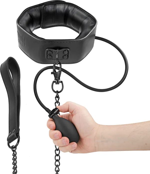 Intensifiera ditt bondagelek med denna uppblåsbara krage från Fetish Submissive. Den är utformad för komfort och justerbarhet, vilket ger en säker men ändå mjuk passform för både nybörjare och erfarna användare.