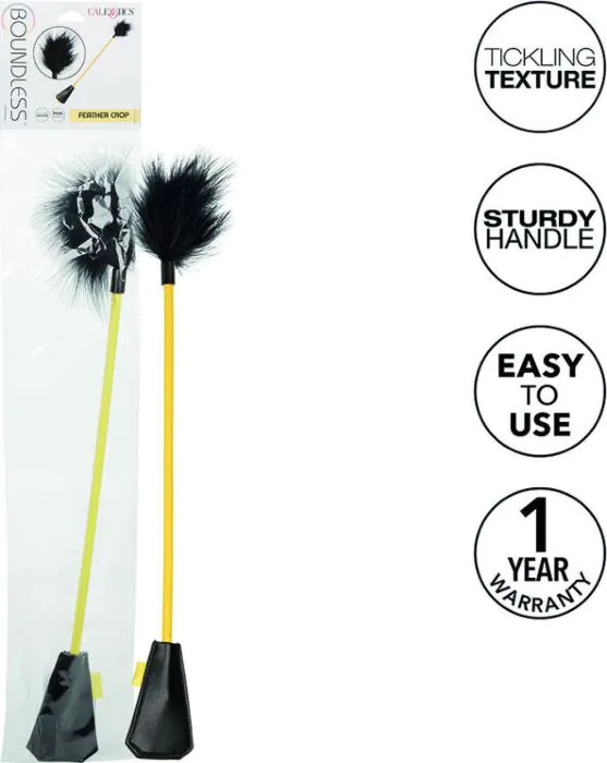 Släpp lös din lekfulla sida med Boundless Fjäderpiskan från CalExotics. Detta dubbeländade verktyg erbjuder både retande fjädrar och lekfulla klappr, för nyfikna par som vill utforska njutningens gränser.