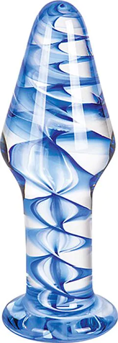 En smal och jämn analplug i glas med en inre blå spiral för visuell detalj och subtil textur. Den är lätt att rengöra och ger en kontrollerad stimulans.