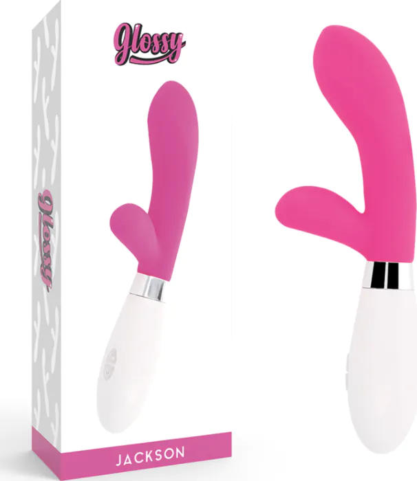 Intensiv dubbelstimulering med 10 vibrationslägen väntar på dig. GLOSSY Jackson Rabbit Massager har en smidig design i silikon och två kraftfulla men tysta motorer som tillgodoser dina önskemål. Den konturerade toppen och den vinklade skaft formar tillsammans för att rikta in sig på din G-punkt samtidigt som de ger njutbara klitorisstimuleringar.
