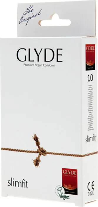 Upplev komfort och sinnesro med Glyde Ultra Slimfit kondomer, tillverkade av naturlatex och 100% veganska. Dessa smörjda kondomer är designade för den som söker en tightare passform och har en reservoartopp för extra säkerhet.