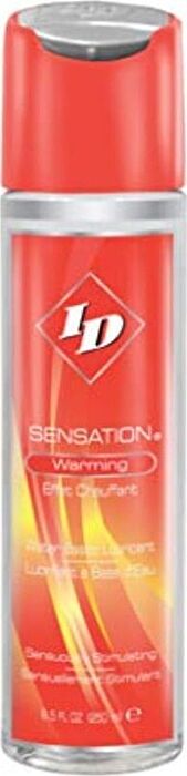 Tänd din passion med ID Sensation, ett vattenbaserat glidmedel som värms vid kontakt. för ensamlek eller intima stunder med en partner.