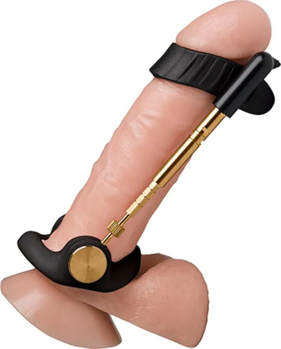 Placera apparaten genom att sätta den plastiska ringen vid basen av penis och säkra den silikonskyddet runt toppen. Justera spänningen mellan stängerna för optimala resultat. Börja med att använda den ett par timmar om dagen och öka gradvis tiden efter din komfort. För bästa resultat, överväg att använda ett vattenbaserat glidmedel under användning.