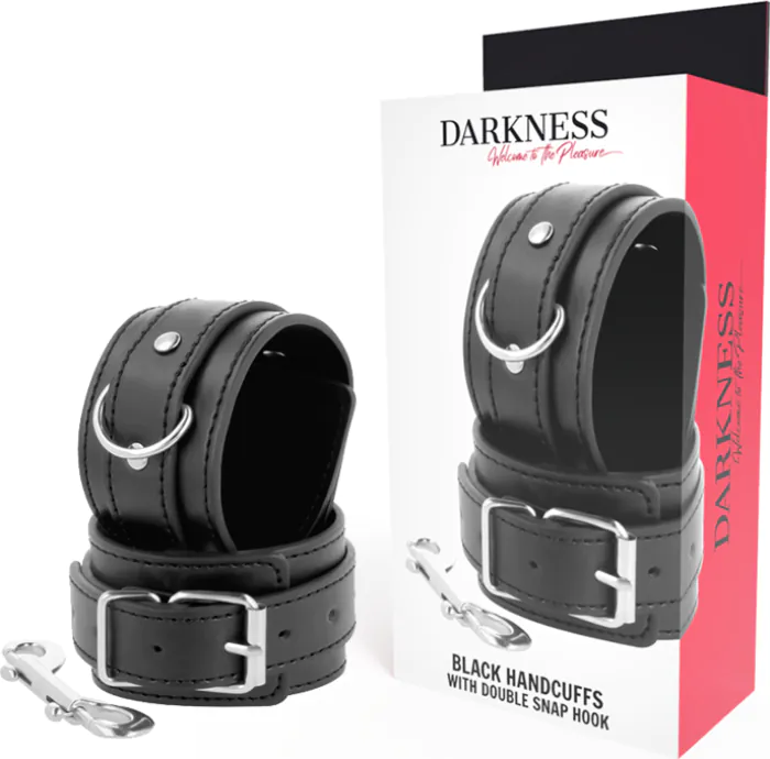 Upplev spännande återhållande med dessa eleganta handbojor från Darkness. Tillverkade av högkvalitativt PVC-läder, passar både nybörjare och erfarna entusiaster inom BDSM.