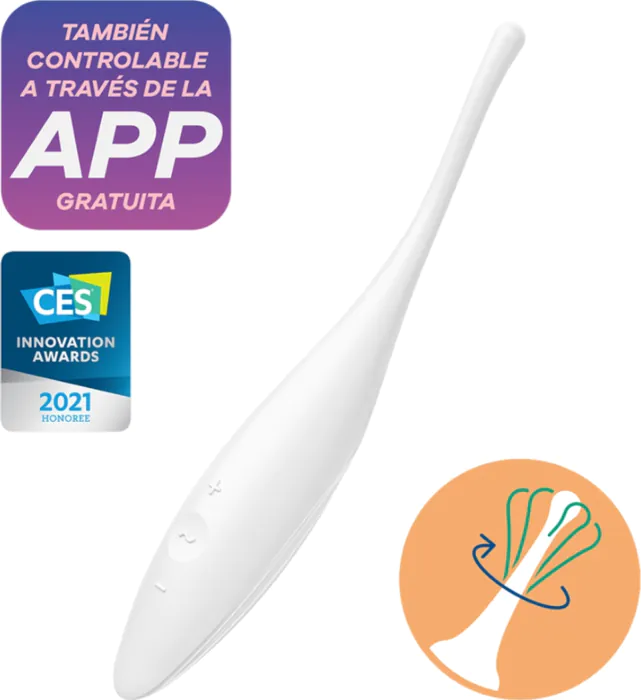 Upplev riktad stimulering med Satisfyer Twirling Joy. Denna klitorisstimulator i silikon erbjuder mångsidig kontroll via sin app, för precisa njutningar.
