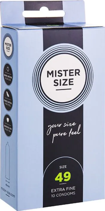 MISTER SIZE 49 kondomer är utformade för en snug passform vilket säkerställer maximal känslighet under intima stunder. Dessa ultratunna kondomer låter dig njuta av varje känsla, särskilt avsedda för de med något smalare penisar.