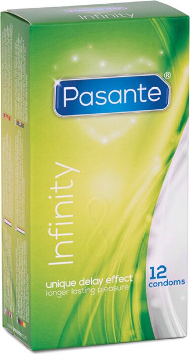 Förlängd njutning med en bedövande känsla, tack vare den inkluderade Lidokain. Pasante Infinity kondomer är skapade för den som önskar att förlänga klimax och förbättra sina intima stunder med komfort och enkelhet.