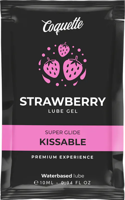 Njut av en söt smakupplevelse med Coquettes jordgubbsglidmedel. Den portabla 10 ml förpackningen gör den för användning på språng.