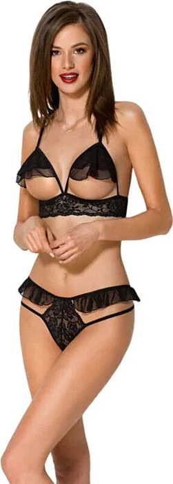 Lingerie Passion Dolly Set Svart L/XL – Öppen Kup-BH & Trosor