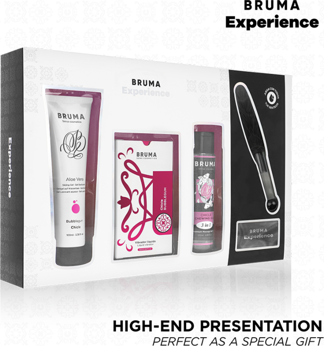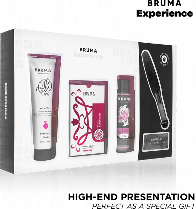 Tänd dina intima stunder med BRUMA XPERIENCE Söt Gummi Frestelse Kit. Med en flytande vibrator, glidmedel och sensoriska tillbehör erbjuder detta kit en lekfull blandning av smak och njutning.