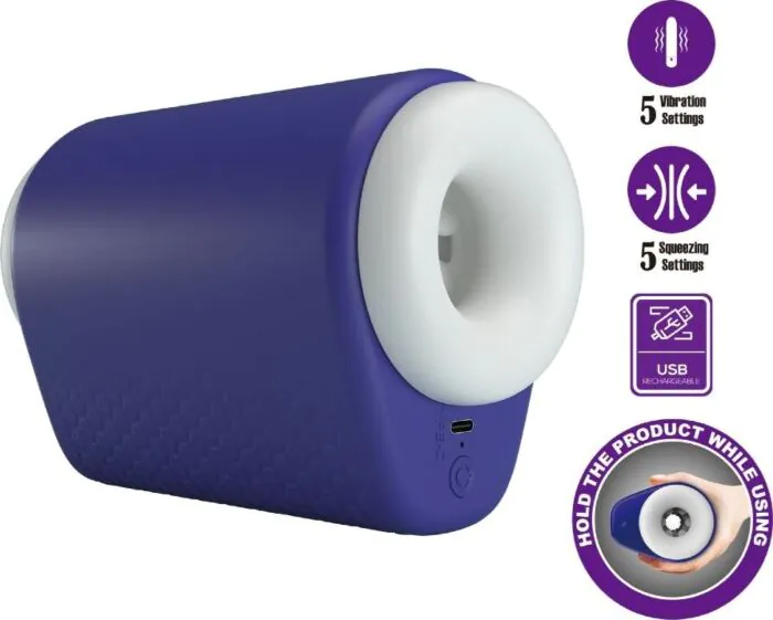 Applicera ett vattenbaserat glidmedel för optimal komfort och njutning. Sätt helt enkelt in dig i den texturerade kanalen och upptäck de olika vibrationslägena. Justera klämningen efter önskemål för att intensifiera känslorna.