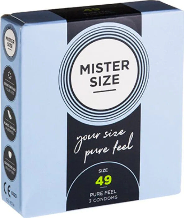 MISTER SIZE 49 mm kondomer är designade specifikt för den som behöver en snug fit. Tillverkade av naturligt gummilatex och ultratunna på endast 0,05 mm, erbjuder dessa kondomer en balanserad mix av säkerhet och känsla, vilket låter dig fullt ut njuta av dina intima stunder.