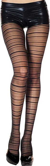 Svarta trosor med horisontella ränder från Music Legs som ger textur under kjolar eller klänningar. Ett enkelt mönstrat alternativ för vardagligt bruk eller utekvällar.