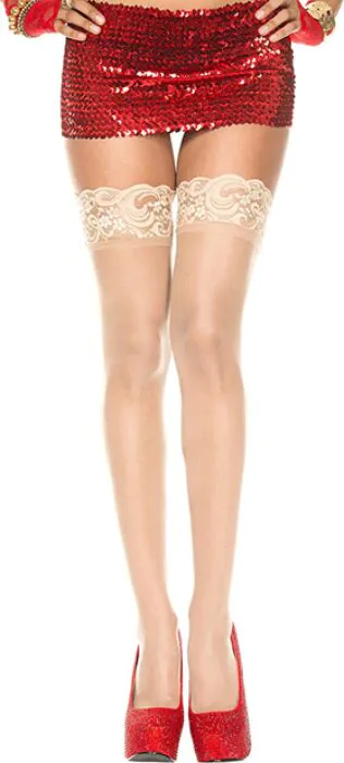 Enkla beiga strumpor som går upp till låret från Musikben med Lycra för en flexibel och bekväm passform. Passar den som söker en subtil och komfortabel stil för vardagsbruk.