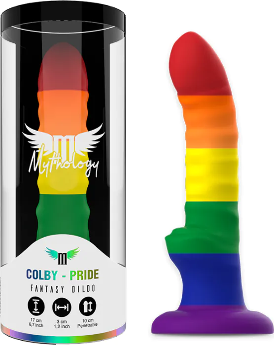 Upplev varierad njutning med Mythology Her Colby Pride Dildo. Tillverkad av mjuk silikon med en stark sugapparat och kompatibel med selar.