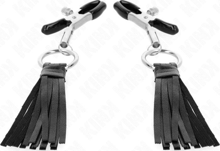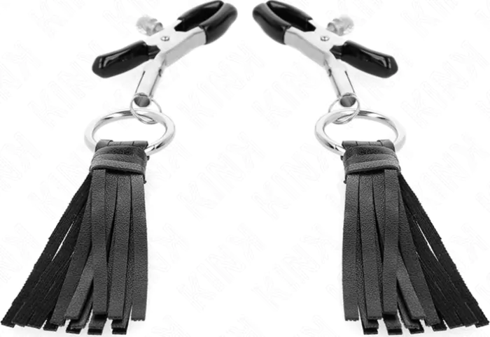 Experience intense stimulation with KINK's nipple clamps, crafted from durable materials that ensure both safety and pleasure. The 6 cm design features soft faux leather tassels, enhancing the sensory experience while applying precise pressure to the nipples.