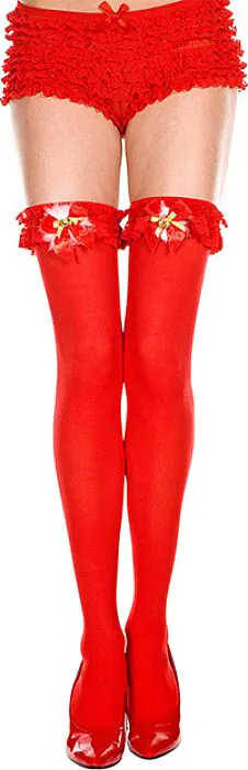 Dessa oopaka strumpor från Music Legs ger en festlig touch till din outfit med en dekorativ rosett och en liten klocka på strumpebandet. för den som söker ett säsongsbetonat tillbehör att bära med kjolar, klänningar eller underkläder.