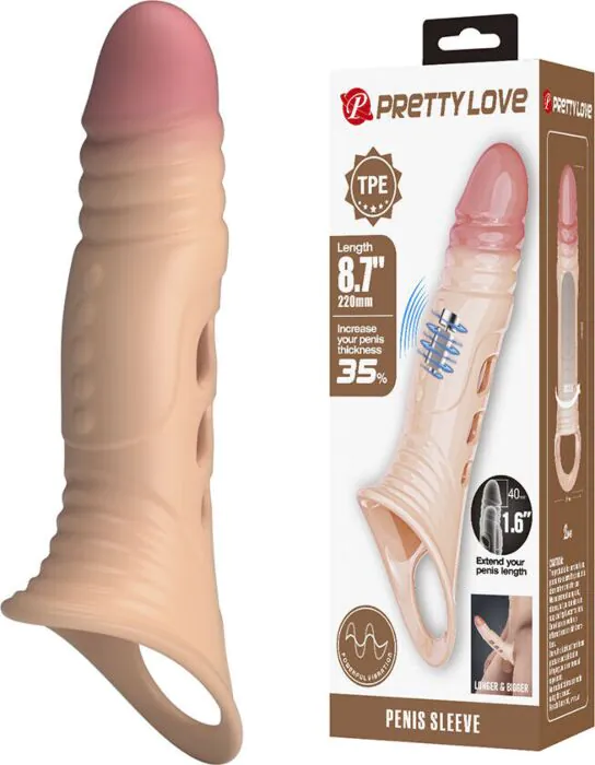 Få intensiv stimulans med Pretty Love vibrerande penis hylsa. Den ergonomiska designen säkerställer en snug passform samtidigt som den ökar njutningen under intima stunder.