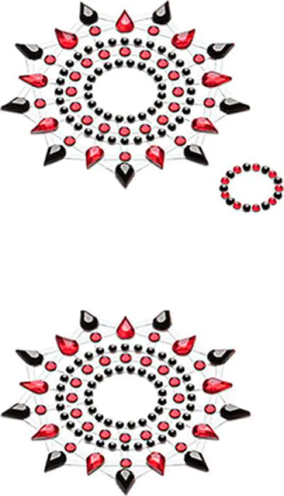 för dem som vill ha ett slående och bärbart kroppspynt för en utekväll, en show eller ett privat tillfälle. Inte lämpligt för personer med kända allergier mot hudlim, mycket känslig hud eller trasiga/irriterade bröstvårtor — prova istället clip-on eller tygalternativ.