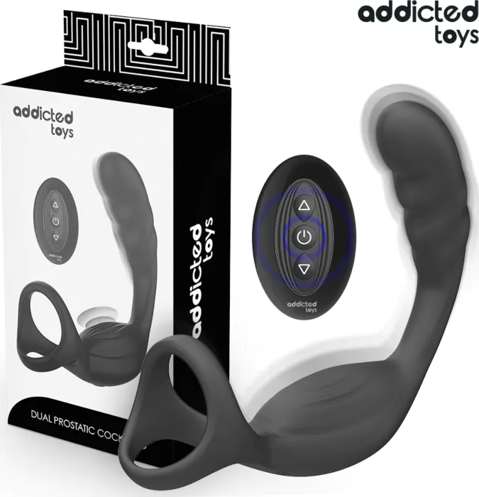 Upplev intensiv njutning med Addicted Toys dubbla prostata vibrator ring. Designad för samtidig stimulering av penis och P-punkt, med fjärrkontroll och 10 varierande vibrationslägen.