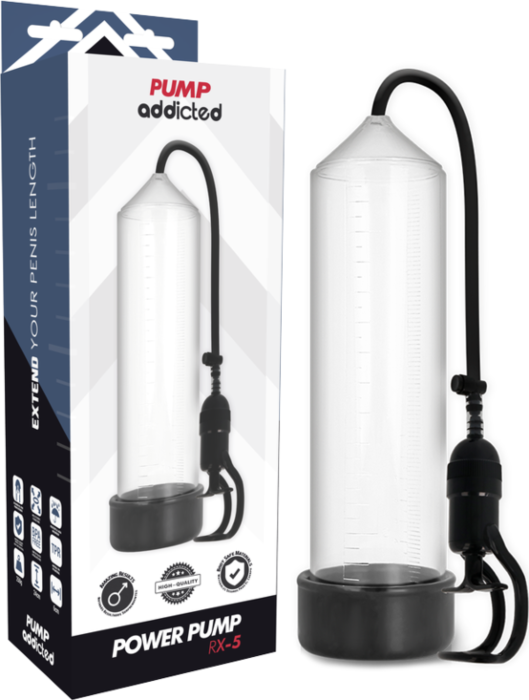 Öka både storlek och prestation med Pump Addicted RX5. Denna pump är designad för män som vill förbättra styrkan och komforten i sina erektioner, och använder ett vakuumsystem för effektiva resultat.