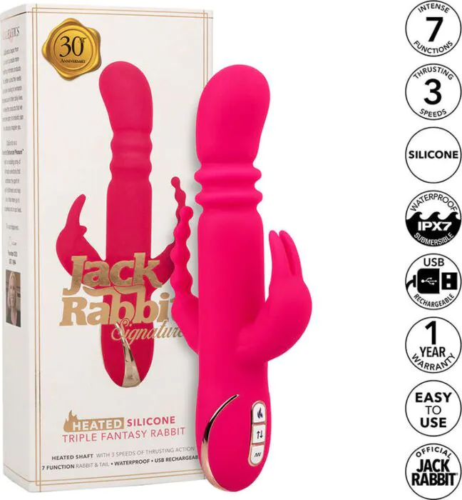 Upplev den lyxiga värmen från Jack Fantasy Triple Rabbit Vibrator. Med en uppvärmd axel och flera vibrationsinställningar lovar den intensiva njutningar både för nybörjare och erfarna användare.
