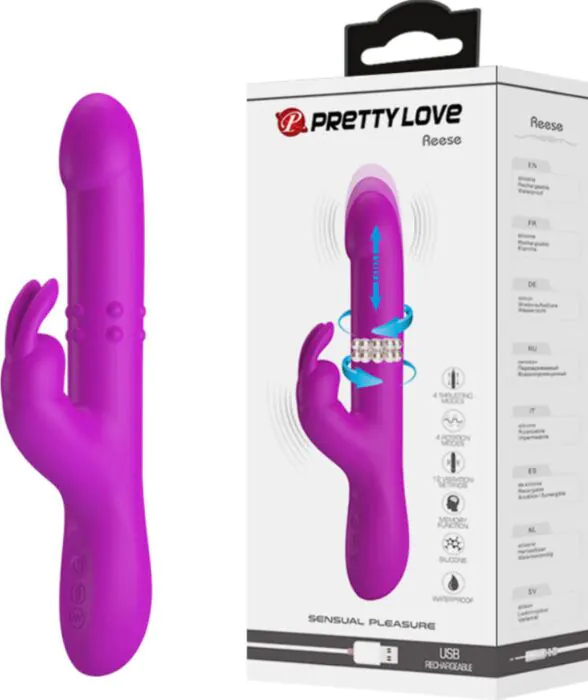 Upplev samtidig njutning med Pretty Love Reese Rabbit Vibrator. Utformad för intensiva klitoriska och G-punkts upplevelser, erbjuder denna eleganta enhet flera lägen för personlig njutning.