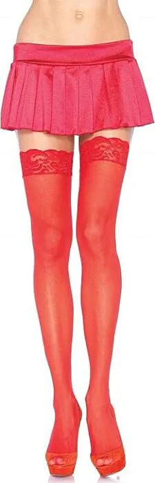 Höj din spetskollektion med dessa röda strumpor från Leg Avenue. Spetskanten ger ett elegant inslag, vilket gör dem för alla outfits.