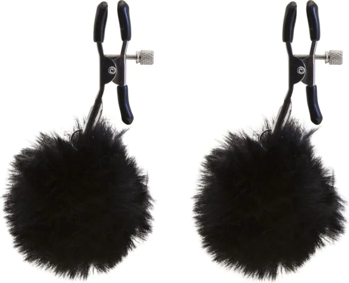 Kompakta brostvartsklämmor från S Pleasures med justerbart tryck. De mjuka hängande pom-poms ger en lekfull och sensuell känsla, vilket gör dem lämpliga för både nybörjare och erfarna användare.