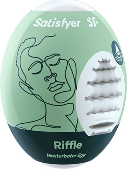 Ett kompakt och strukturerat masturbatoragg från SATISFYER EGGS’ EGGCITED-serie. Riffle använder Hydro-Active TPE, vilket endast kräver ett stänk vatten för en glidande upplevelse.